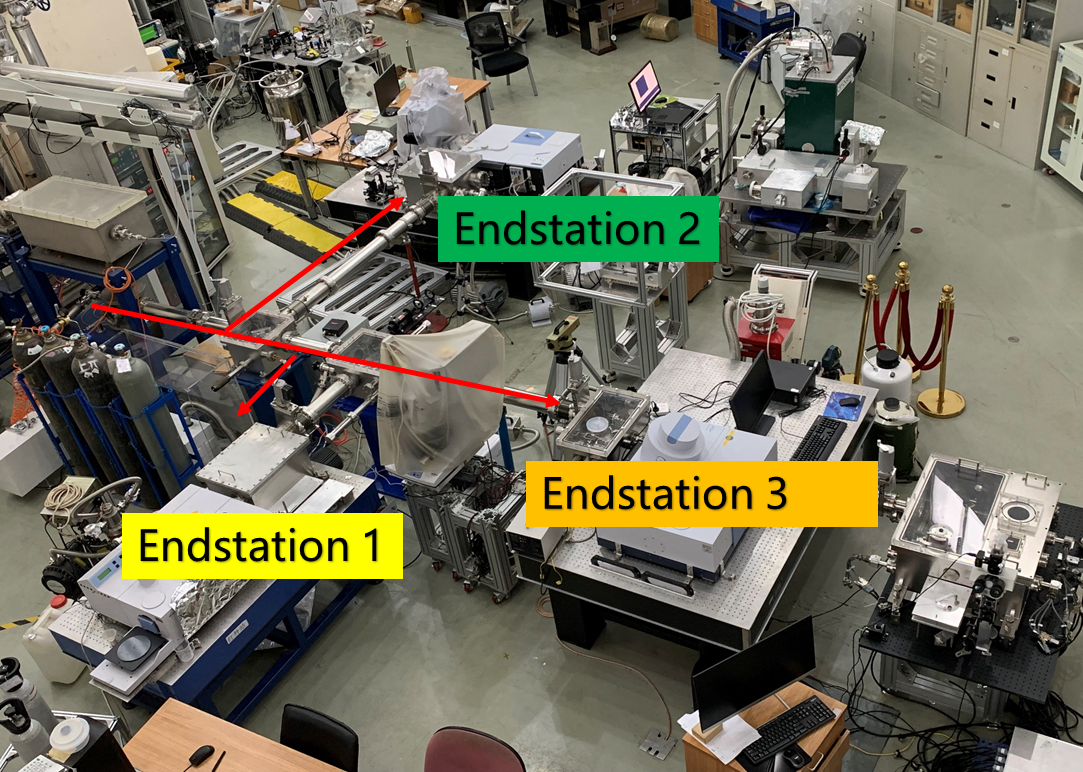 As illustrated, the experimental facility comprises three distinct endstations: Endstation 1: In Situ Spectroscopy Experimental Endstation, Endstation 2: Microspectroscopy Imaging Experimental Endstation, and Endstation 3: Extreme Conditions Experimental Endstation.