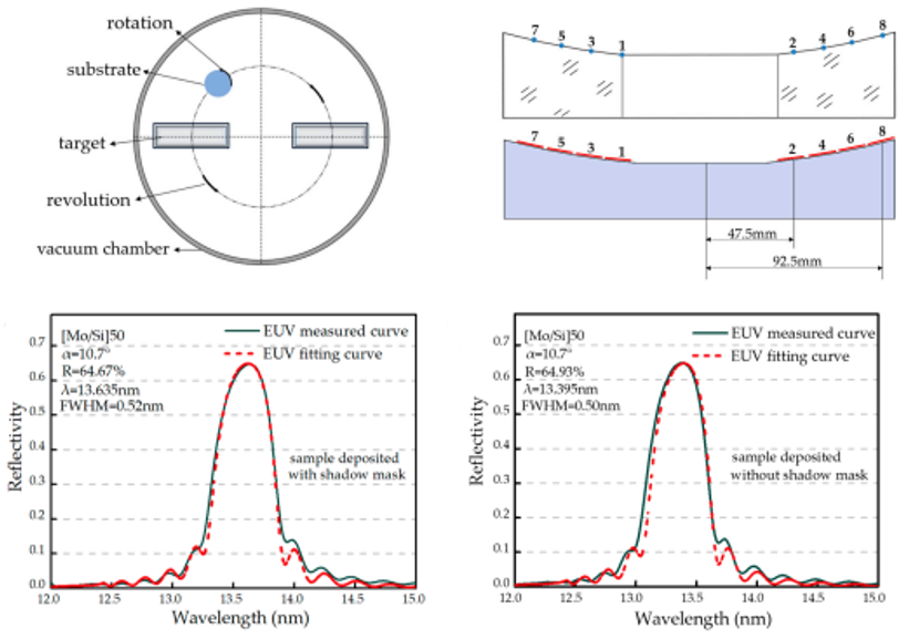EUV multilayer film elements are the core optical elements of EUV optical systems. Through the design of periodic film layer structures, the highest possible reflectivity can be obtained under specific wavelength and incident angle conditions. In a typical EUV lithography system, the light emitted by the EUV light source must undergo multiple reflections from the collecting mirror, the illumination system, and the projection objective lens, resulting in the total reflectivity of the optical system in the lithography machine being about one hundred times lower than the reflectivity of a single multilayer film mirror. It can be said that the central reflection wavelength and reflectivity of the EUV multilayer film mirror are the two key performance indicators that determine the exposure efficiency of the system. The reflectivity test system of the metrology line station can be used to perform high-precision reflectivity measurements, thereby providing strong support for process optimization and performance attenuation research of multilayer film mirrors.