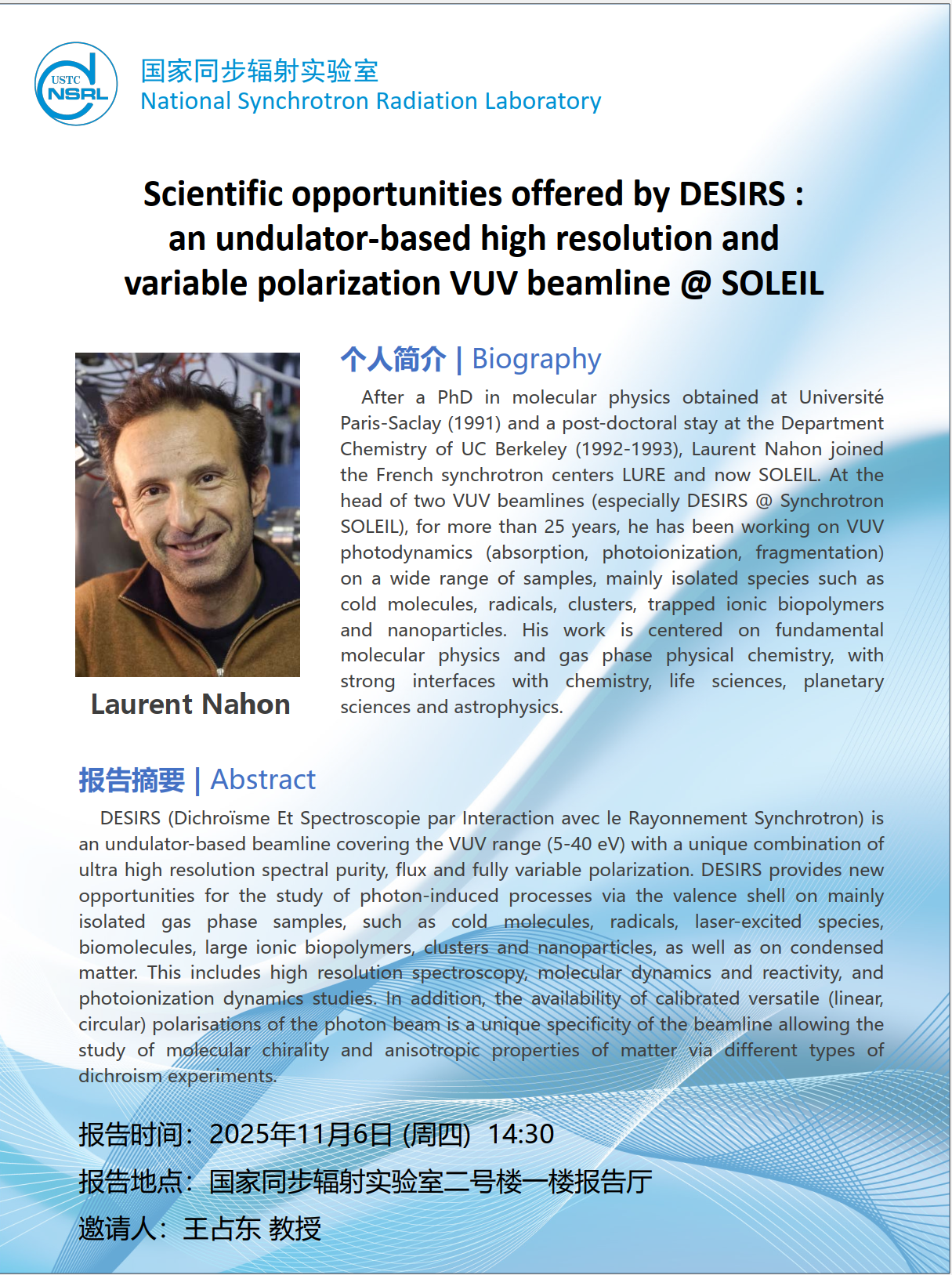 Academic event - Scientific opportunities offered by DESIRS : an undulator-based high resolution and variable polarization VUV beamline @ SOLEIL