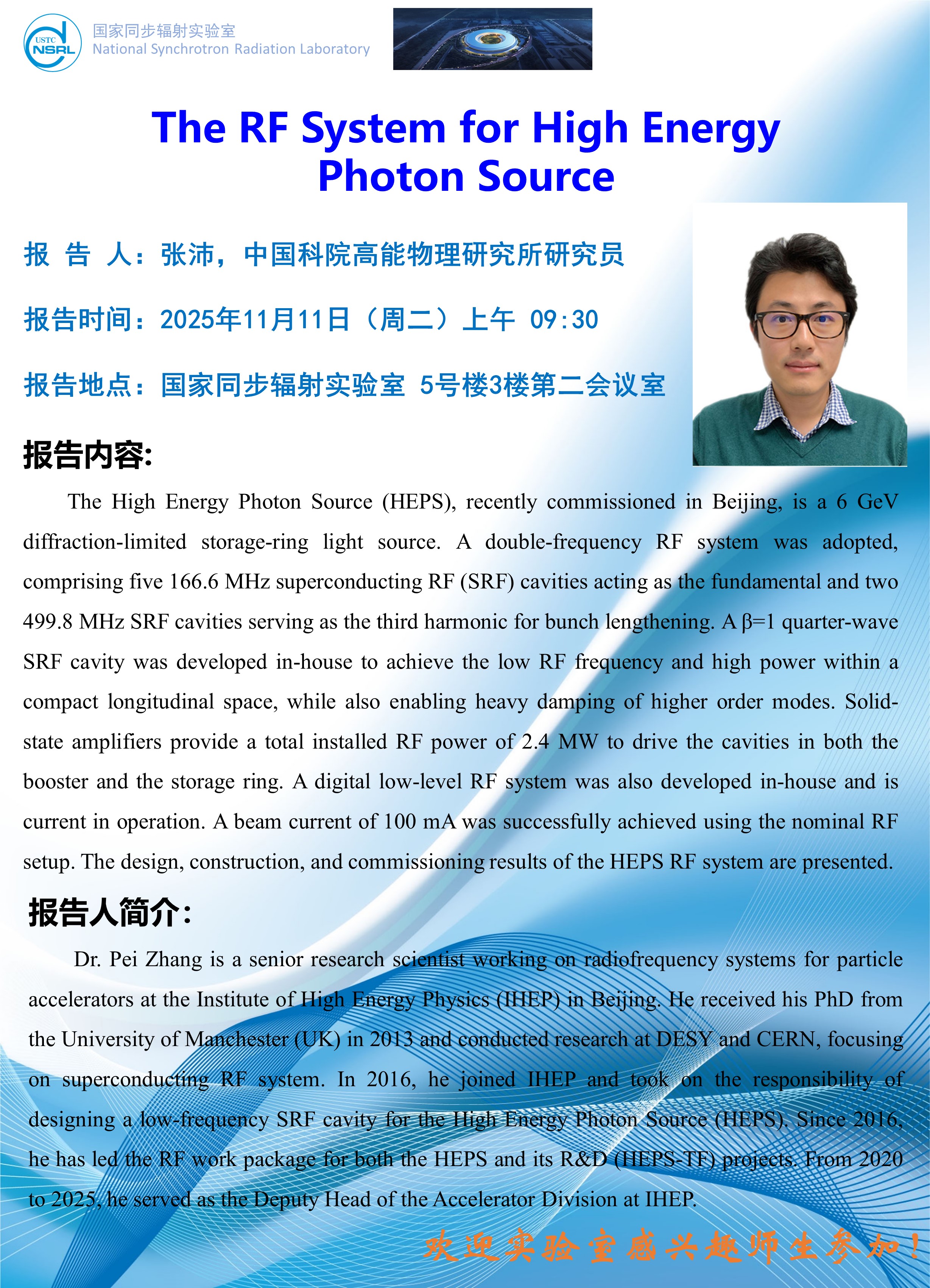 Academic event - The RF System for High Energy Photon Source