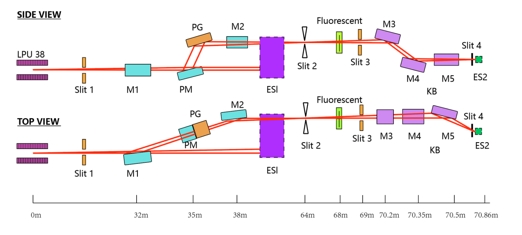 The endstation for X-ray optics research receives the attenuated and filtered fundamental-energy beam for in-house soft X-ray optics research. The beam is attenuated by a heat load chopper. The harmonic rejection mirrors absorb the higher harmonic beam as well as attenuate the incident beam. The endstation works on the fundamental energy ranging from 250 eV to 1000 eV. The bandwidth is the intrinsic value (~1%) from the LPU38.