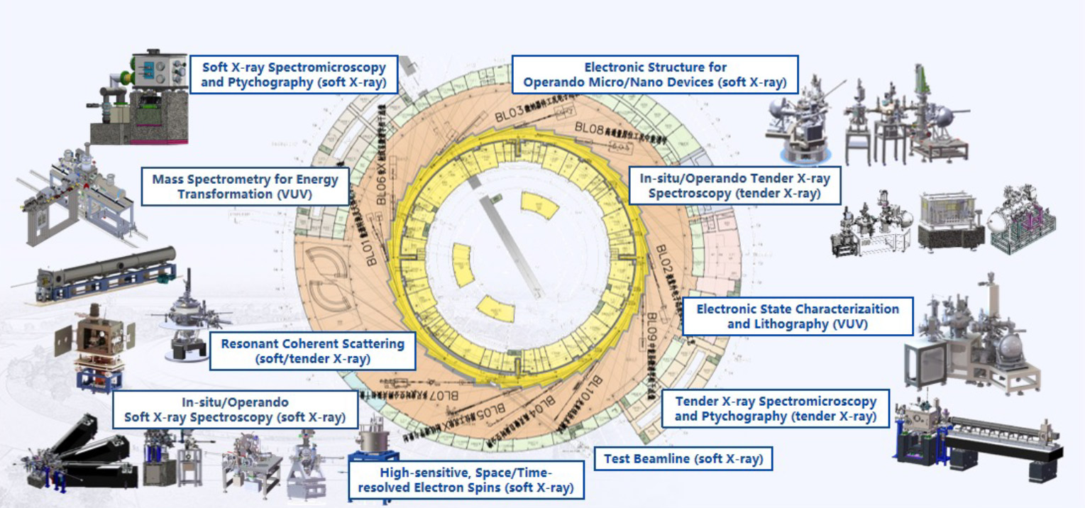 According to user needs, the Hefei Light Source currently has 10 beamlines and experimental stations, including 5 insertion element beamlines, namely combustion, soft X-ray imaging, catalysis and surface science, angle-resolved photoelectron spectroscopy, and atomic and molecular physics beamlines and experimental stations; and 5 bent iron beamlines, namely infrared spectroscopy and microscopy, mass spectrometry, metrology, photoelectron spectroscopy, soft X-ray magnetic circular dichroism, and soft X-ray in situ spectroscopy beamlines and experimental stations.
