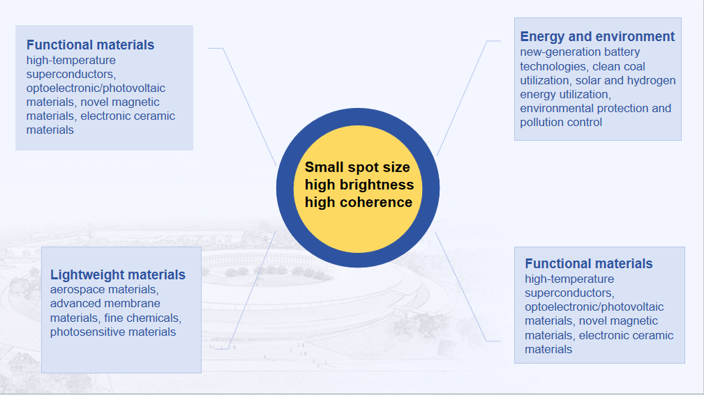 Leverage the advantages of low-energy diffraction-limited storage light source in terms of brightness, coherence, energy and spatiotemporal resolution to develop new experimental methods with higher precision and sensitivity across spatial, temporal and energy dimensions. This will enable precise measurements of the electronic, chemical and spin states of non-uniform complex systems, achieving significant breakthroughs in the national strategic fields such as functional materials, lightweight materials, energy and environment, life and health. By acting as an innovative engine, HALF will promote industrial technological innovation and applications, and support the construction of innovative country of China.