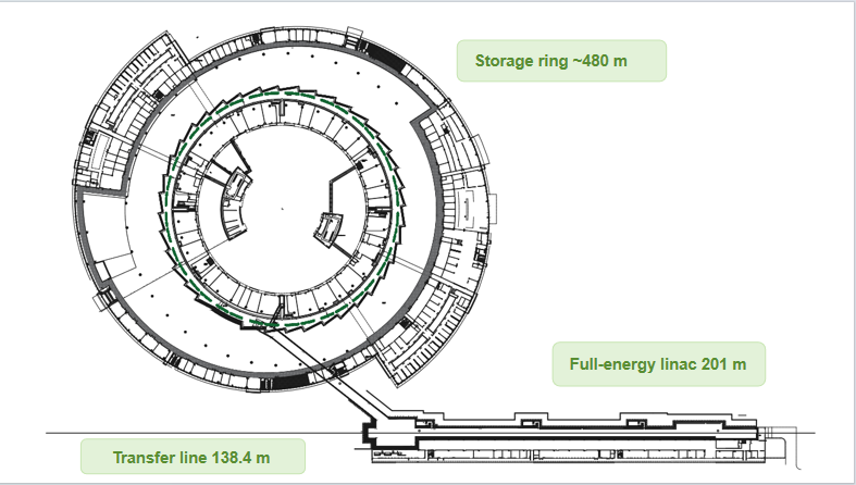 >The storage ring has a beam energy of 2.2 GeV with capability for future energy increase to 2.4~2.5 GeV. The natural beam emittance at 2.2 GeV is 86 pm•rad.