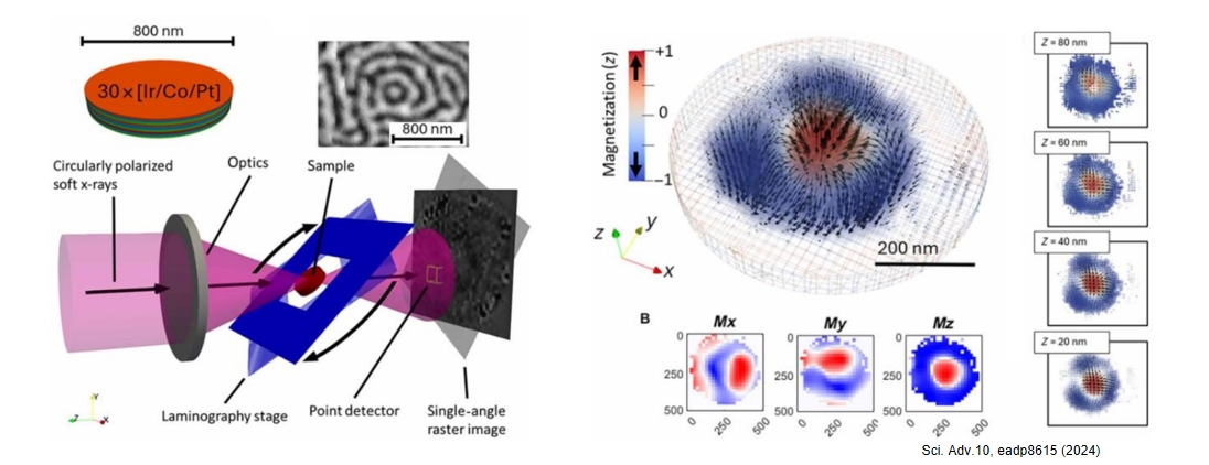 Scientific Scope 2-2: The core goal of skyrmion imaging is to uncover the 3D evolution, multifield control, and room-temperature stability of topological spin structures using high-resolution multimodal microscopy, thereby supporting spintronic device design. Soft X-ray coherent diffraction imaging, combined with 3D vector reconstruction, achieves nanoscale resolution of coupled ferroelectric-magnetic topological states—such as room-temperature polar skyrmions in frustrated magnets—at sub-10 nm scales. In-situ magnetic fields are essential: they allow direct observation of skyrmion nucleation and annihilation, temperature-driven transitions to meron-antimeron pairs, and magnetic/current control over 3D skyrmion interactions. By integrating 3D X-ray imaging, high-field response, and in-situ multifield characterization, skyrmion research is advancing spintronics toward high-density storage, neuromorphic computing, and topological quantum devices.