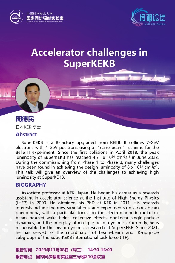National Synchrotron Radiation Laboratory (NSRL) is the first national laboratory in China, and it is a part of USTC. NSRL operates the first dedicated synchrotron radiation facility in China --- Hefei Light Source (HLS). With continuous upgrades, the new HLS, i.e. HLS-II, now is the major light source in China that generates bright VUV and soft x-ray. Using advanced experimental stations at HLS-II, users have been conducting cutting-edge research in the areas like physics, chemistry, biology, material sciences, metrology, medicine, and instrumentation.