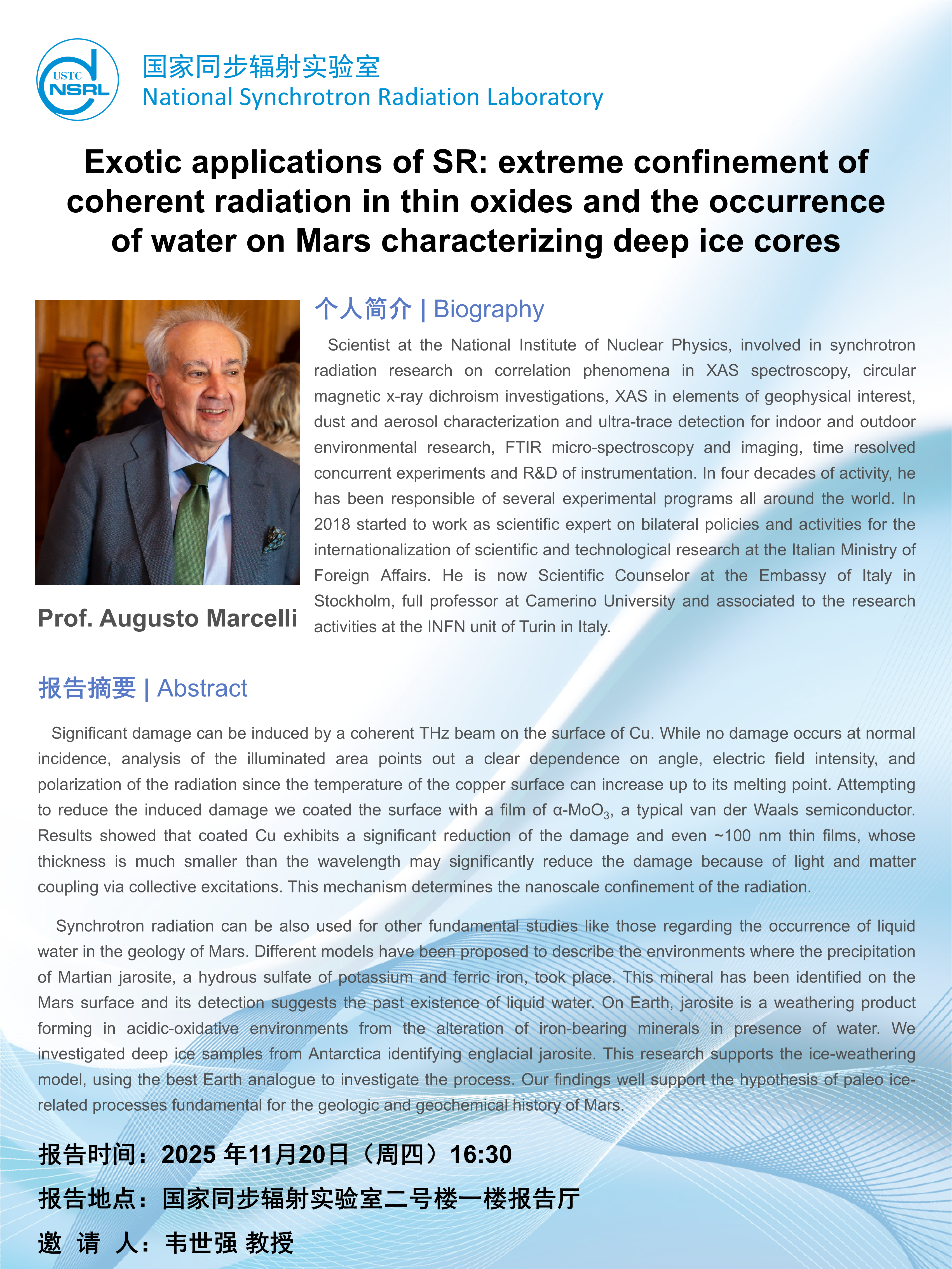 Academic event - Exotic applications of SR: extreme confinement of coherent radiation in thin oxides and the occurrence of water on Mars characterizing deep ice cores