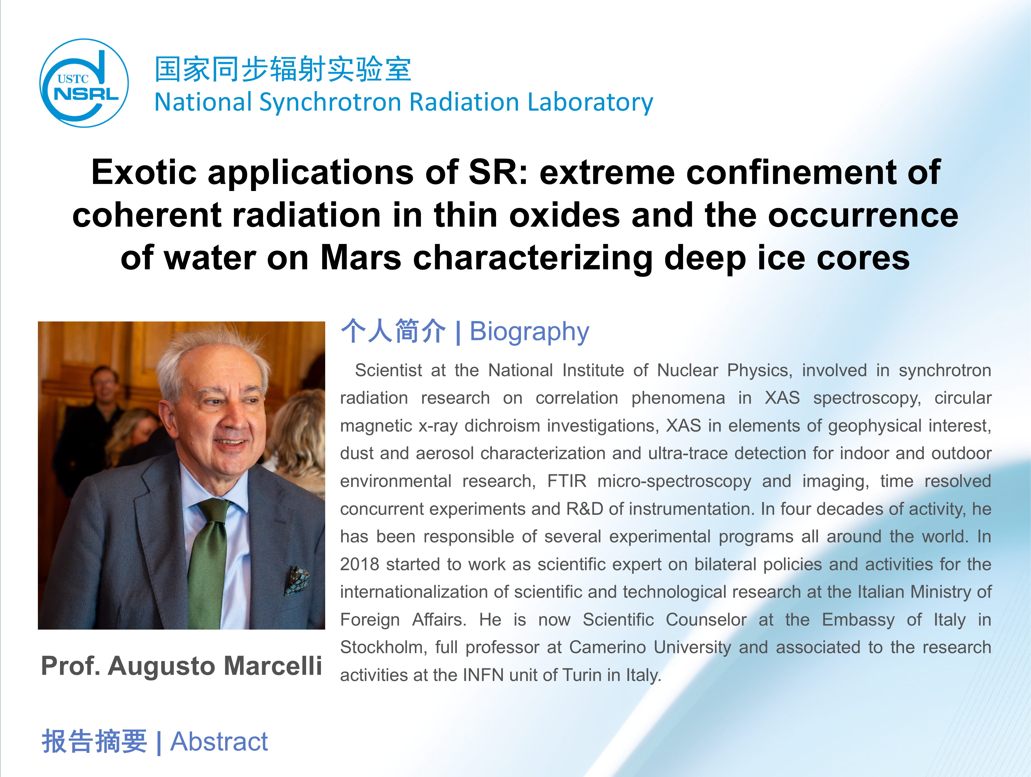 National Synchrotron Radiation Laboratory (NSRL) is the first national laboratory in China, and it is a part of USTC. NSRL operates the first dedicated synchrotron radiation facility in China --- Hefei Light Source (HLS). With continuous upgrades, the new HLS, i.e. HLS-II, now is the major light source in China that generates bright VUV and soft x-ray. Using advanced experimental stations at HLS-II, users have been conducting cutting-edge research in the areas like physics, chemistry, biology, material sciences, metrology, medicine, and instrumentation.